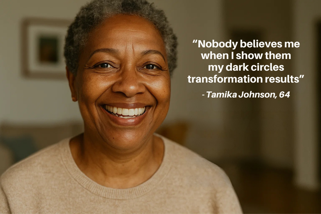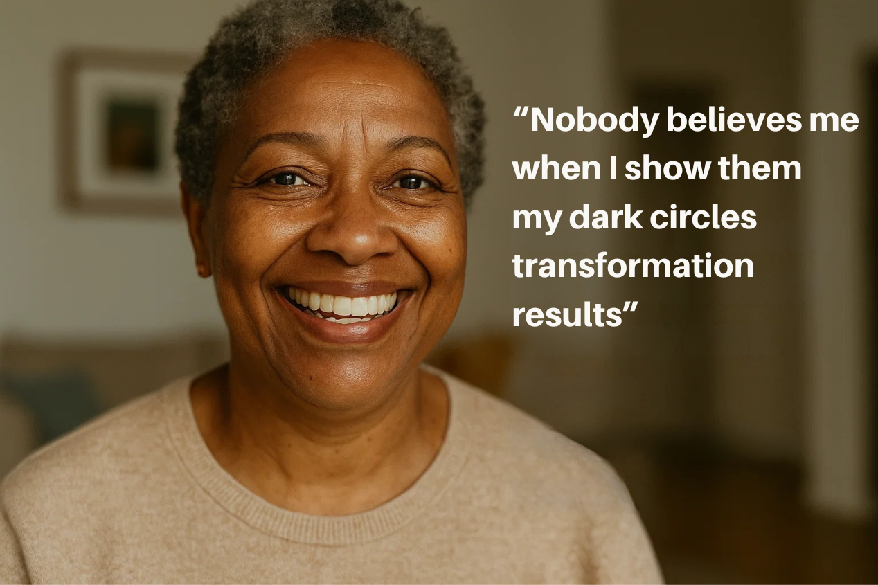 "I'm 72 years old, and I haven't felt this confident about my appearance since my 50s. My grandchildren keep asking what I'm doing differently because my dark circles have almost completely faded."