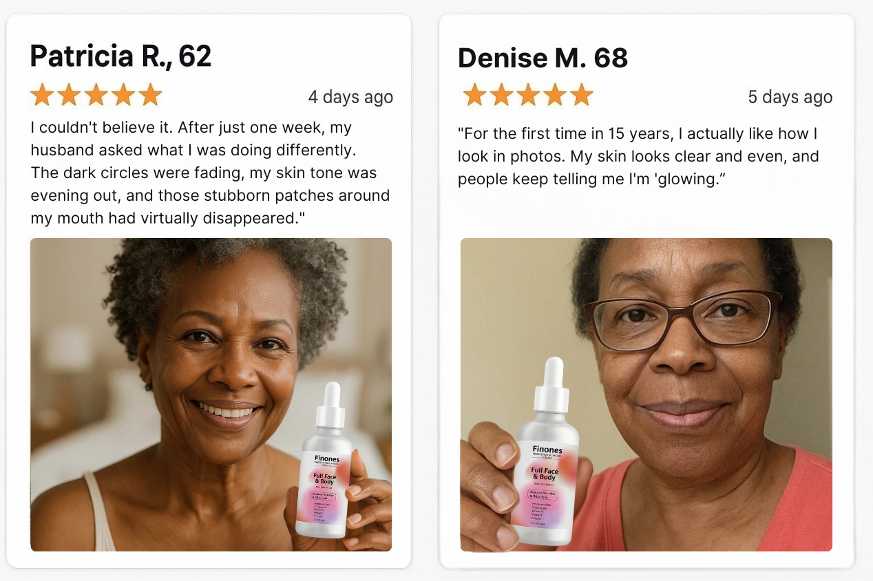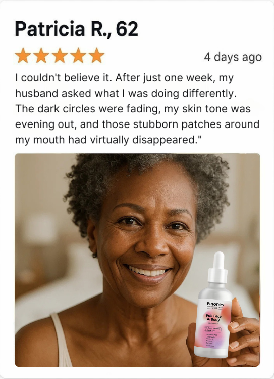"After using Finones for just two weeks, my daughter thought I'd gotten professional treatments. My skin tone is so much more even, and those stubborn dark patches around my mouth are almost gone."