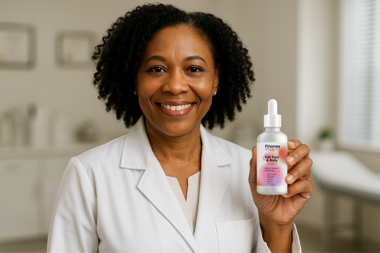 So I partnered up with a Black-owned business called Finones Beauty and began producing this amazing natural skin renewal treatment for every sister. They call it Finones Skin Vitamin Serum.