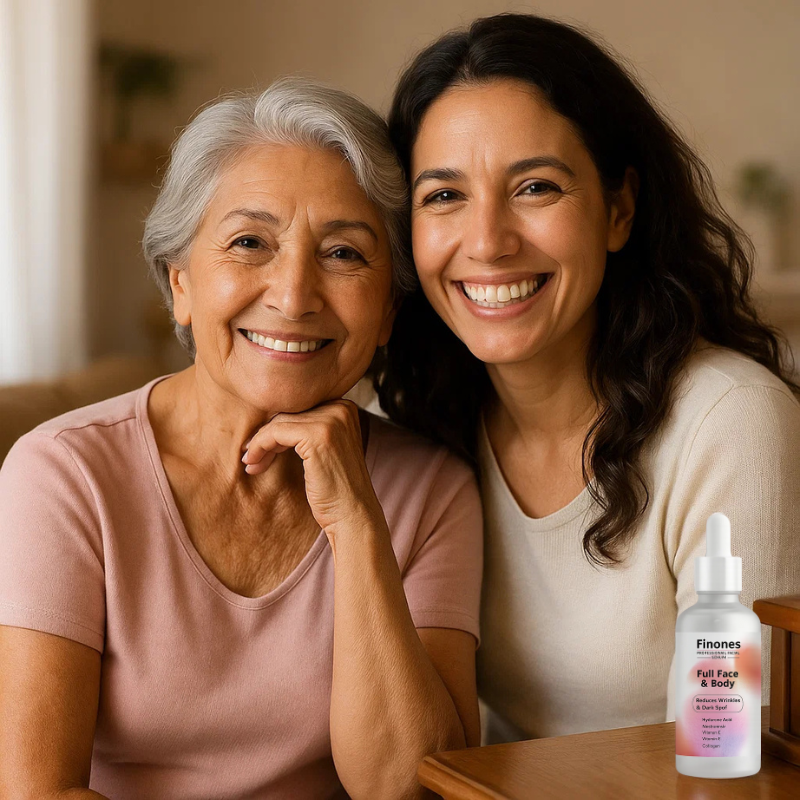 Finones entrega estas vitaminas necesarias directamente donde tu piel las necesita, atacando preocupaciones comunes como el tono y textura desiguales que afectan a las mujeres latinas a medida que envejecen.
